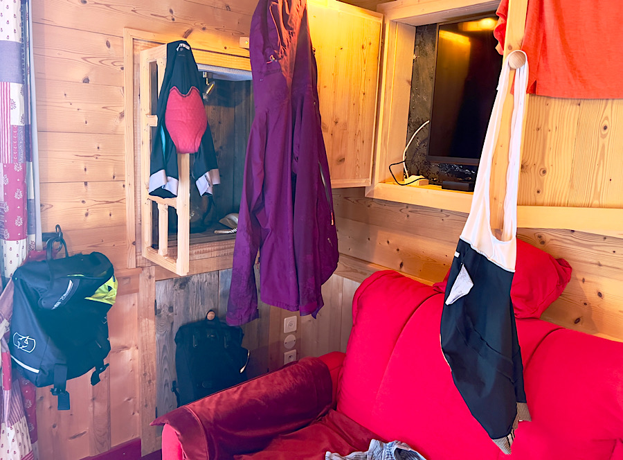We’ve now made it to our hotel in La Cure, a typical mountain chalet straddling the French/Swiss border. We entered the lobby looking like drowned rats and dripping huge pools of water onto the tiled floor. We had to wring out our cycle shoes and we’re now trying to dry out our clothes on every available hook. Hopefully our trip down the mountain to Lac Leman tomorrow will be a bit dryer.