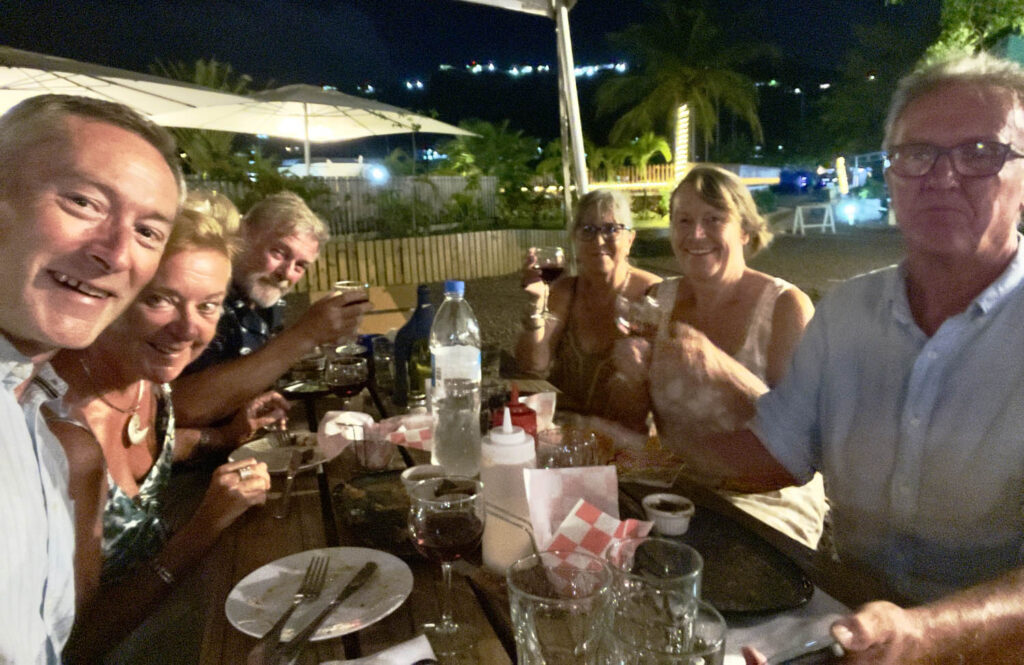 When we left Petite Martinique we hoped for a good sail down to Grenada. We picked a route past the Eastern coast of Grenada, meaning we effectively completed a circumnavigation of the island, even if the first half of the circumnavigation was done back in February. Typically, however, the winds had veered to the South East and had dropped, so much of the propulsion came from the motor. We entered Benji bay, a beautiful bay popular with liveaboards, and spent several days there before a short onward trip to Prickly bay, which we first visited in February. We got word that Stan, one of the Viking rally sailors, was celebrating his 65th birthday in Port Louis, so we took a taxi with Erich and Sabine, also of the Vikings, to help him celebrate. Cate even managed to paint a watercolour card for him!