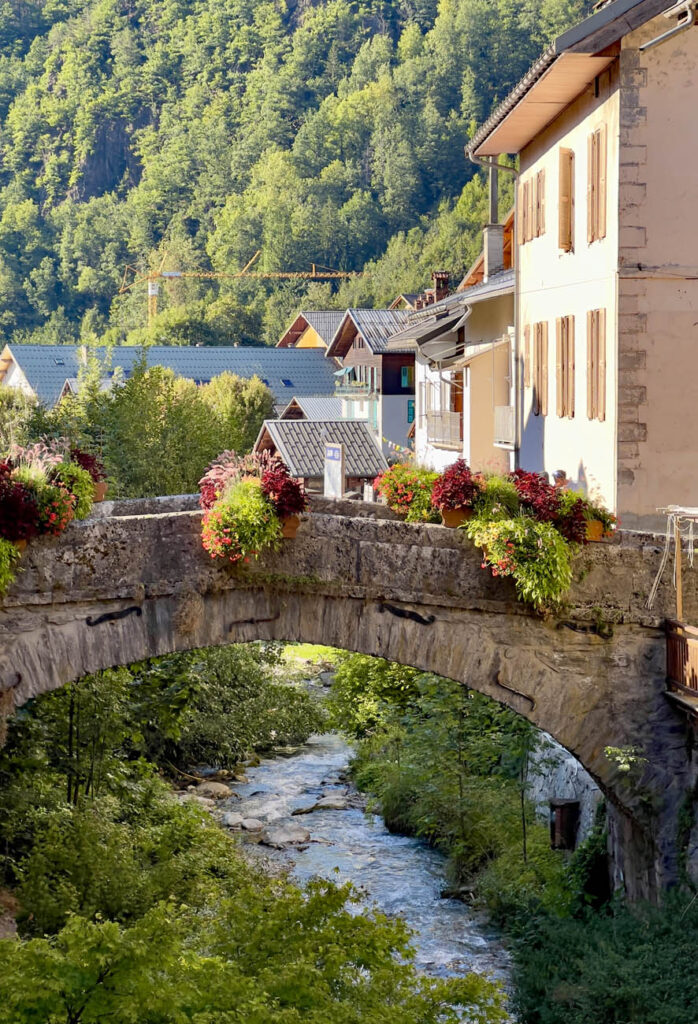 We found a stunning spot overlooking the lake where we ate our packed lunch, then had to don our warmer layers as we descended into the shadows. It’s a 20km descent from the col with the road weaving through dense forest and steep gorges. The scenery is spectacular. We arrived in Beaufort mid-afternoon giving us time for a refreshing ale and a wander around this lovely little town where everything is bedecked with flowers.